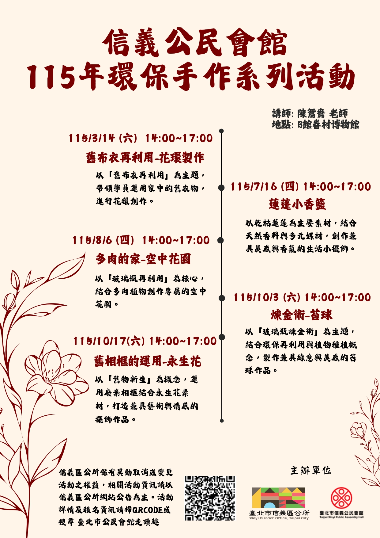 3.響應環保,請自行攜帶環保杯,活動場地備有飲水機。